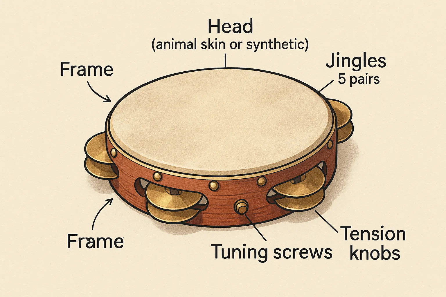 The drumhead was historically made from fish or goat skin, valued for warmth and resonance. Today, many professionals use synthetic heads for climate stability, especially in amplified performances. A well-tuned head provides the riq with its versatile voice: deep dums, crisp taks, and expressive rolls.